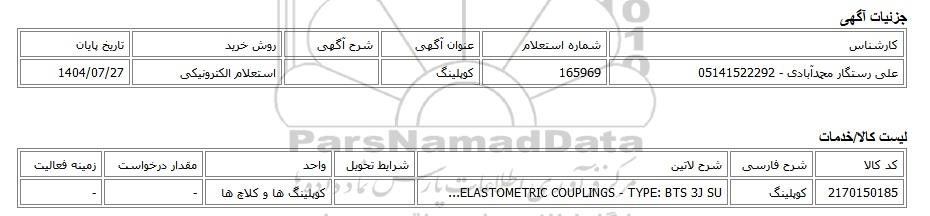 علی رستگار محمدآبادی - 05141522292165969کوپلینگاستعلام الکترونیکی1404/07/27