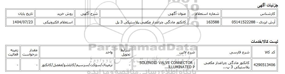 آرش ایزدی - 05141522288163588کانکتور مادگی چراغدار مکعبی پلاستیکی 3 پلاستعلام الکترونیکی1404/07/23