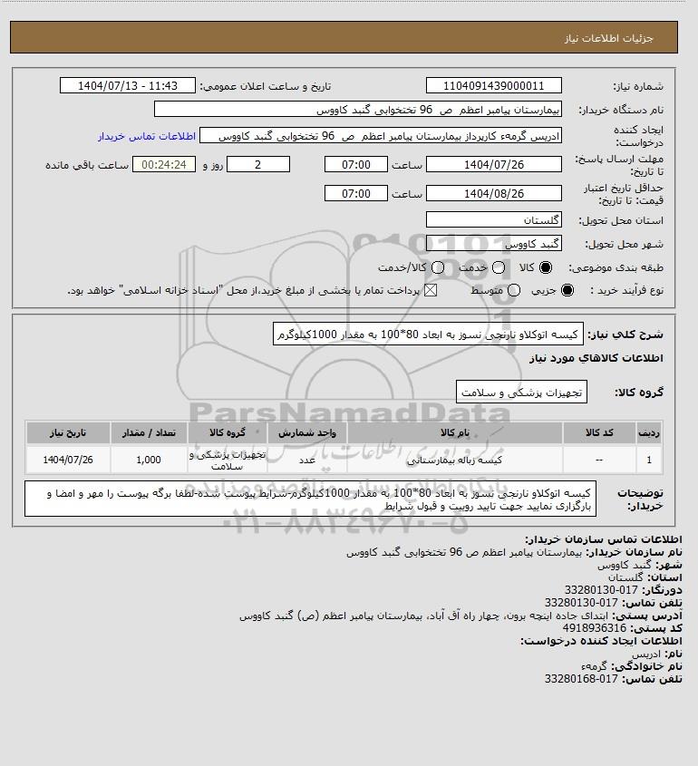 نام دستگاه خریدار:بیمارستان پیامبر اعظم ص 96 تختخوابی گنبد کاووس