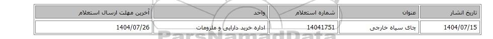 1404/07/15چای ‎سیاه‏ ‎خارجی‏14041751اداره خرید دارایی و ملزومات1404/07/26