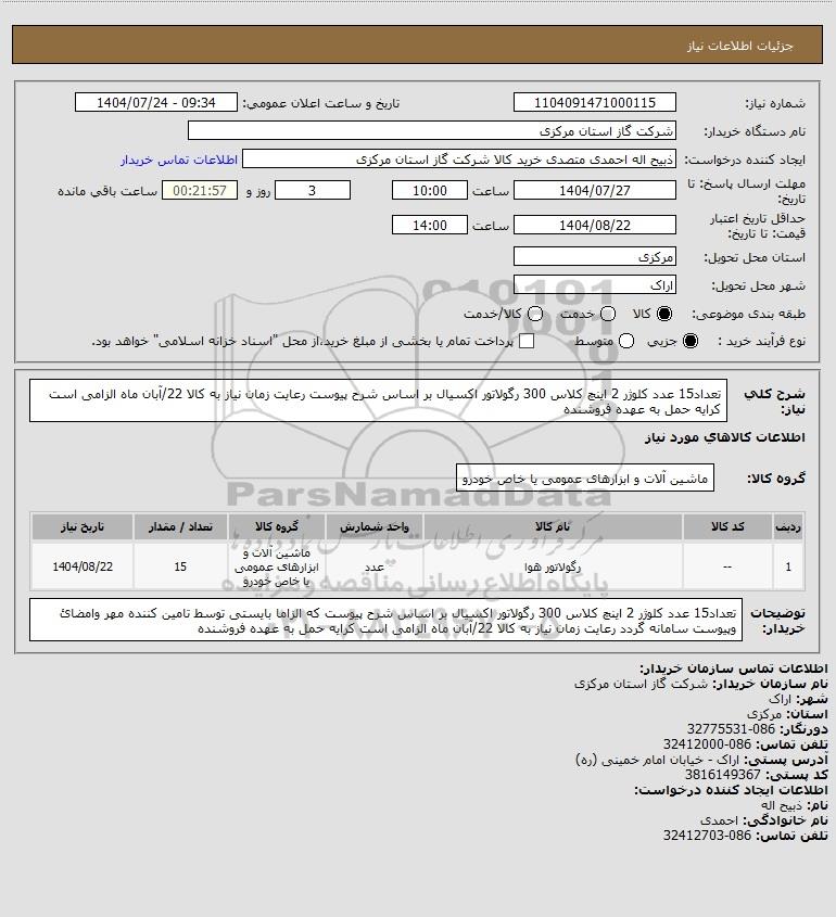 نام دستگاه خریدار:شرکت گاز استان مرکزی
