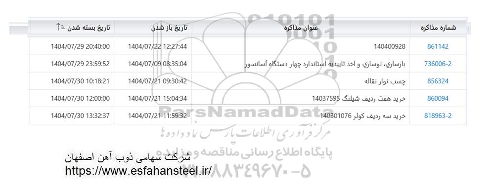 | 860094 | خرید هفت ردیف شیلنگ 14037595 | 1404.7.21 | 1404.7.30 |