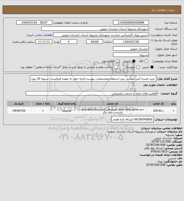 نام دستگاه خریدار:شهرداری بشرویه استان خراسان جنوبی