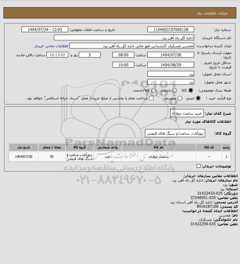 نام دستگاه خریدار:اداره کل راه آهن یزد