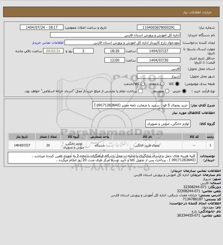 نام دستگاه خریدار:اداره کل اموزش و پرورش استان فارس