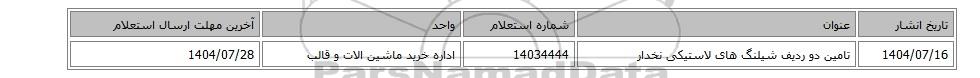 تاریخ انشارعنوانشماره استعلامواحدآخرین مهلت ارسال استعلام
