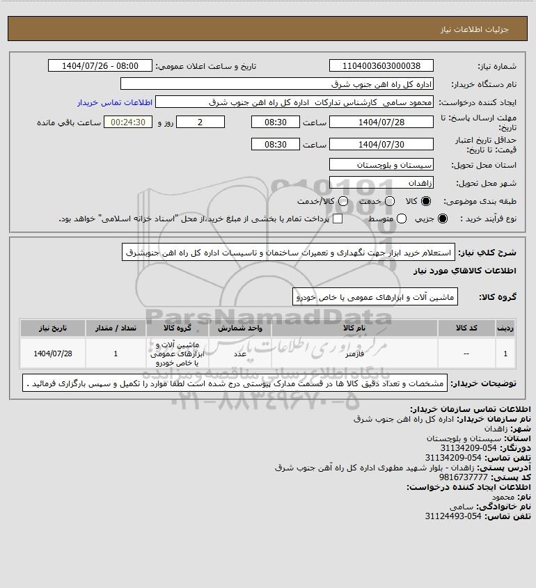نام دستگاه خریدار:اداره کل راه اهن جنوب شرق