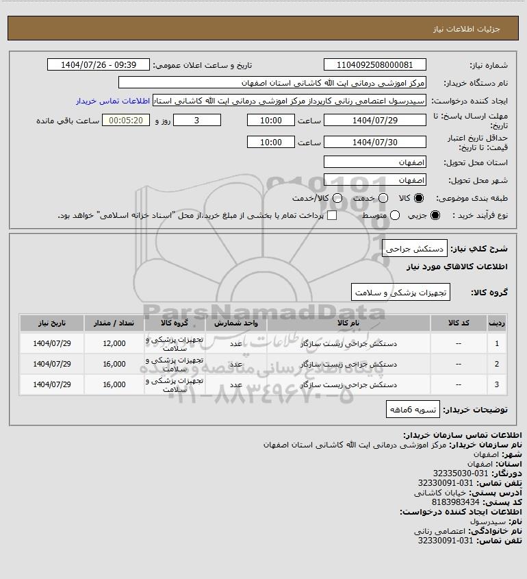 نام دستگاه خریدار:مرکز اموزشی درمانی ایت الله کاشانی استان اصفهان