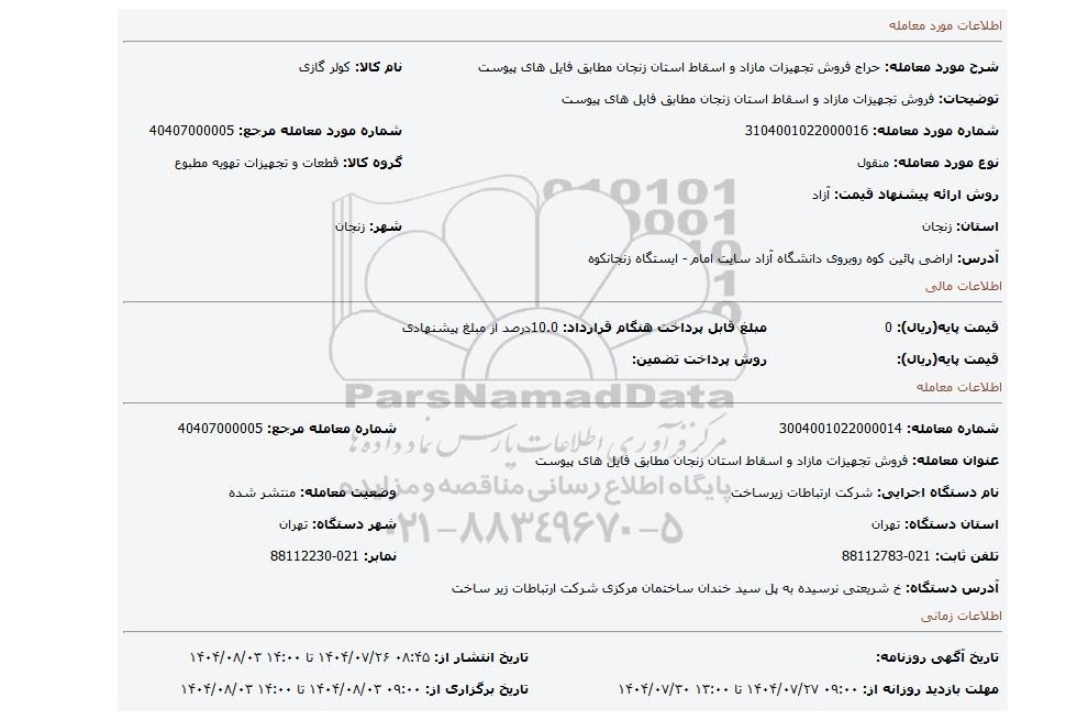 | نام دستگاه اجرایی: شرکت ارتباطات زیرساخت | وضعیت معامله: منتشر شده | |