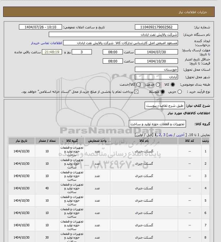 نام دستگاه خریدار:شرکت پالایش نفت ابادان