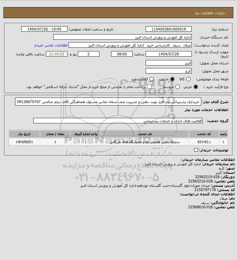 نام دستگاه خریدار:اداره کل اموزش و پرورش استان البرز