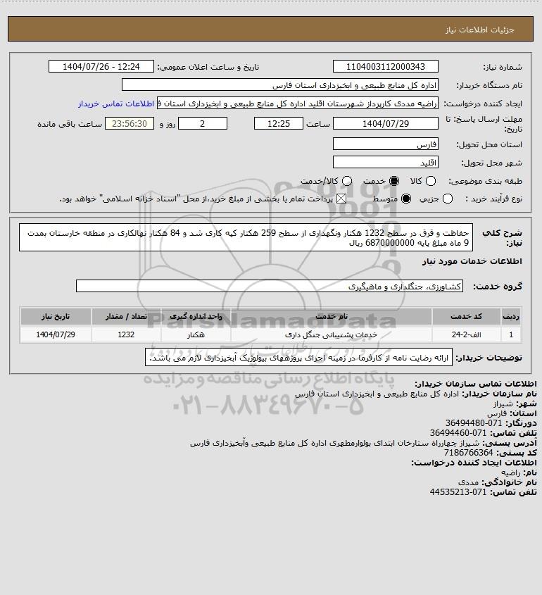 نام دستگاه خریدار:اداره کل منابع طبیعی و ابخیزداری استان فارس