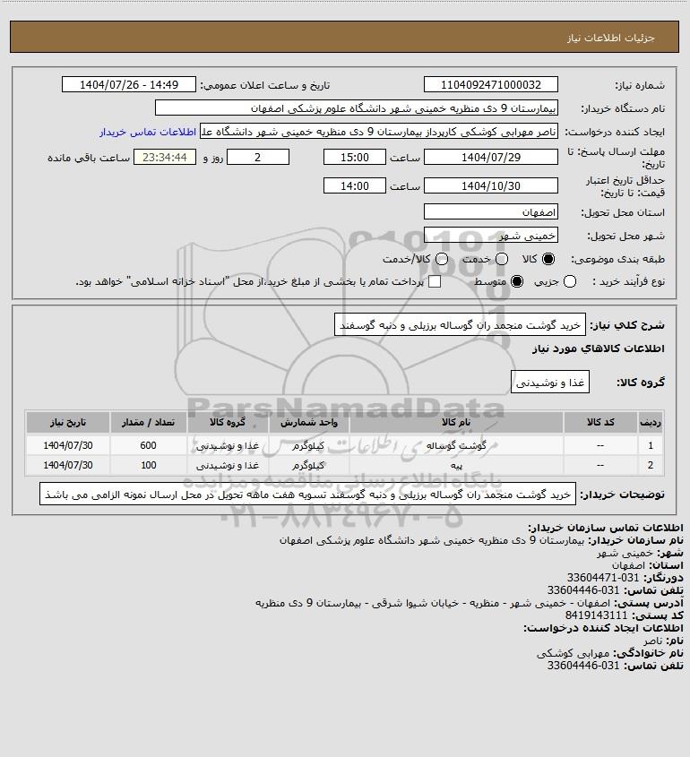 شرح کلی نیاز: خرید گوشت منجمد ران گوساله برزیلی و دنبه گوسفند