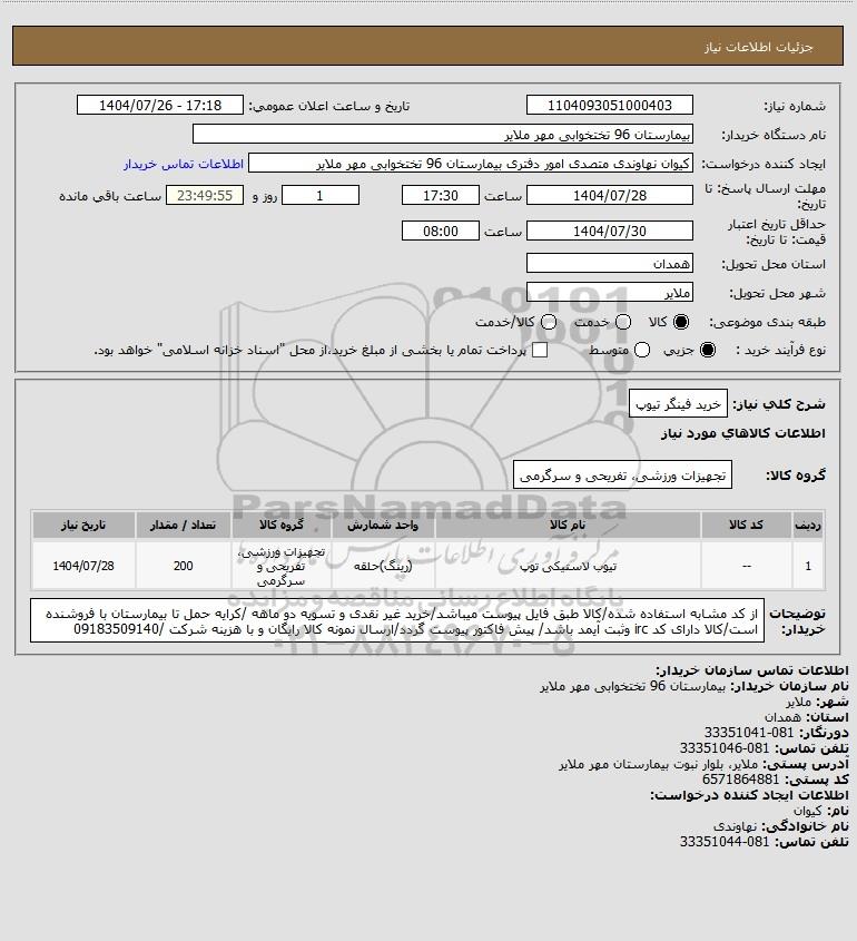 نام دستگاه خریدار:بیمارستان 96 تختخوابی مهر ملایر