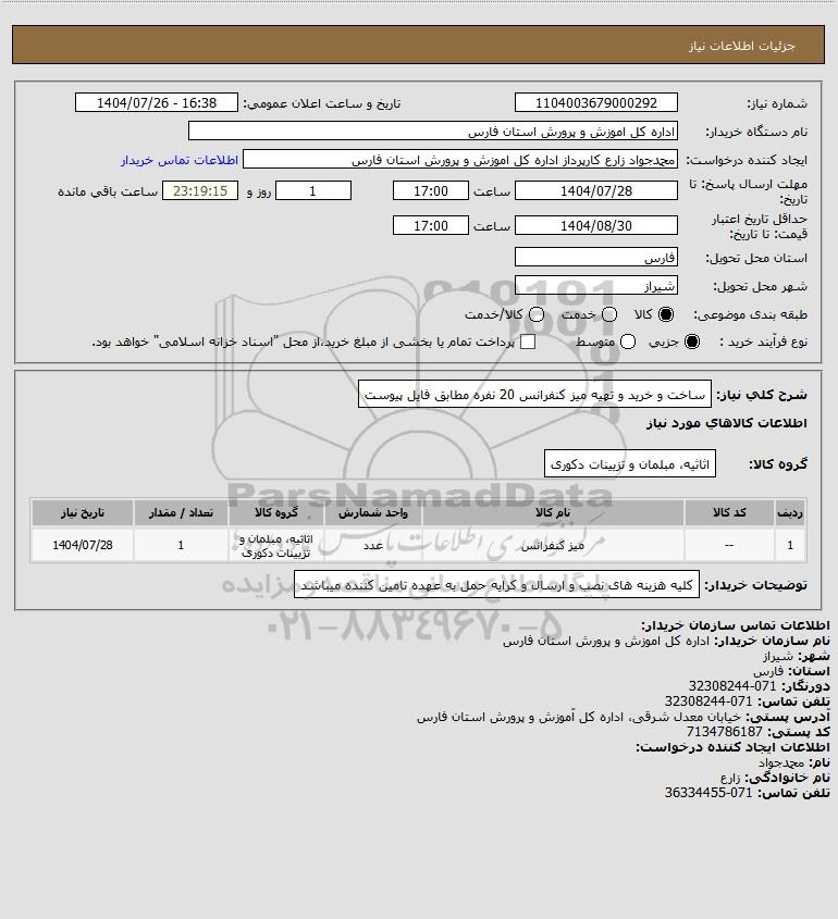 نام دستگاه خریدار:اداره کل اموزش و پرورش استان فارس