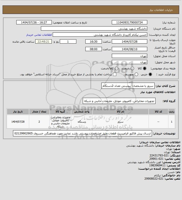 نام دستگاه خریدار:دانشگاه شهید بهشتی