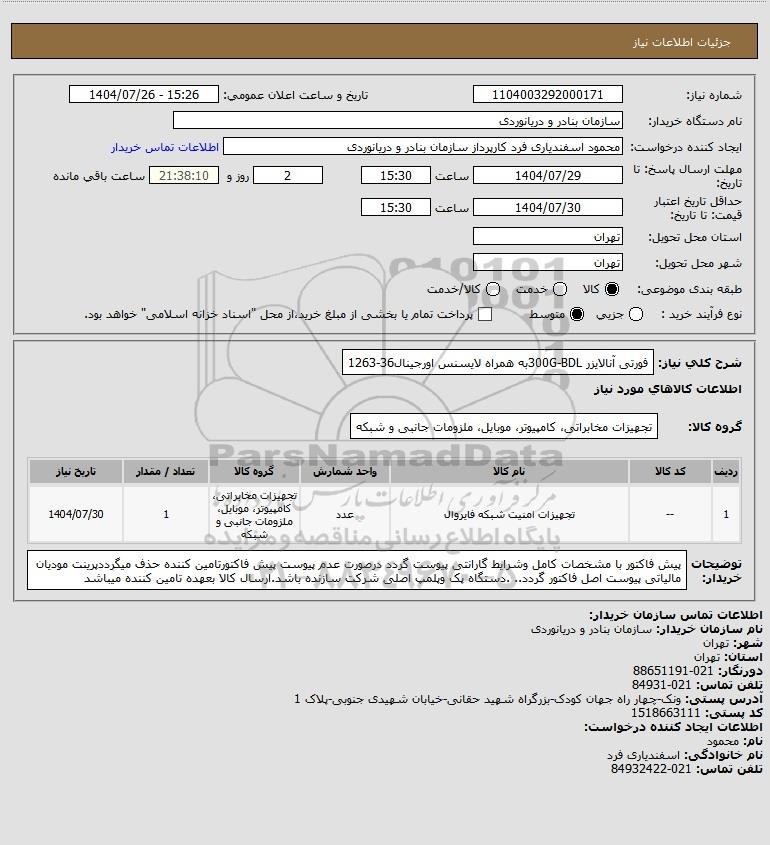 شرح کلی نیاز: فورتی آنالایزر 300G-BDLبه همراه لایسنس اورجینال36-1263