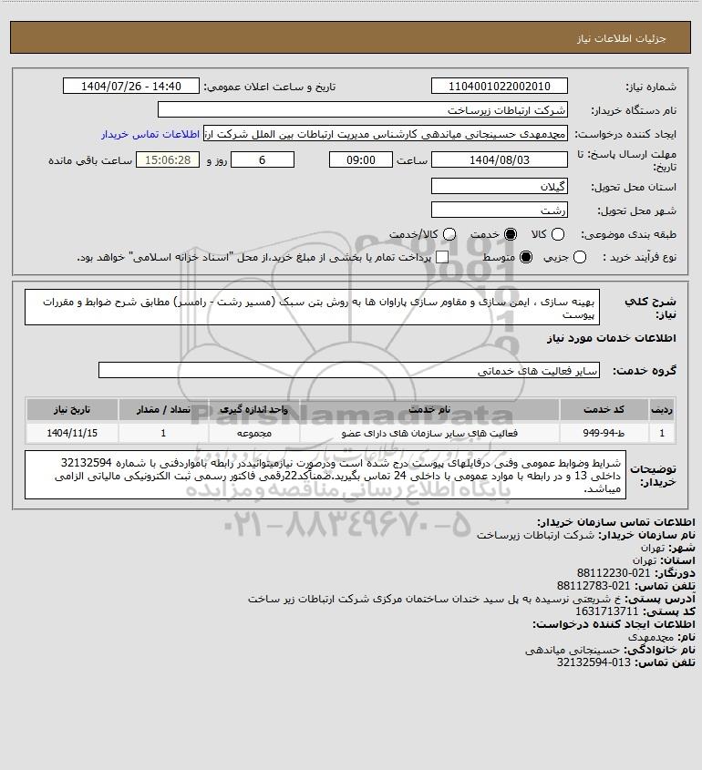 نام دستگاه خریدار:شرکت ارتباطات زیرساخت