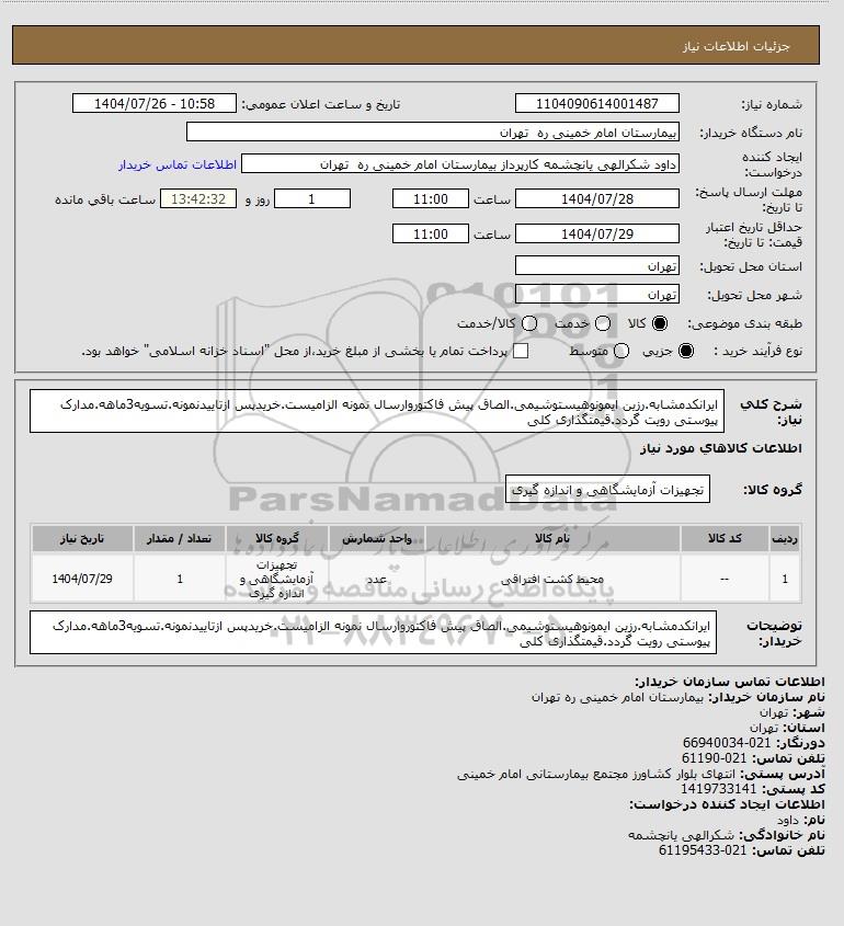 نام سازمان خریدار: بیمارستان امام خمینی ره تهران