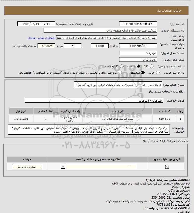 شرح کلی نیاز: اجرای سیستم نظارت تصویری سپاه حفاظت هواپیمایی فرودگاه لاوان