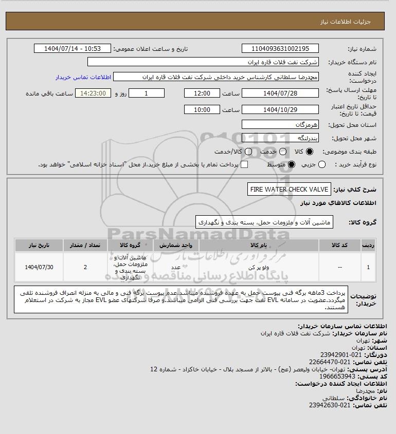 شرح کلی نیاز: FIRE WATER CHECK VALVE