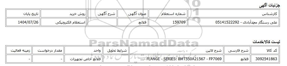 | علی رستگار محمدآبادی - 05141522292 | 159709 | فلانچ | استعلام الکترونیکی | 1404/07/26 |