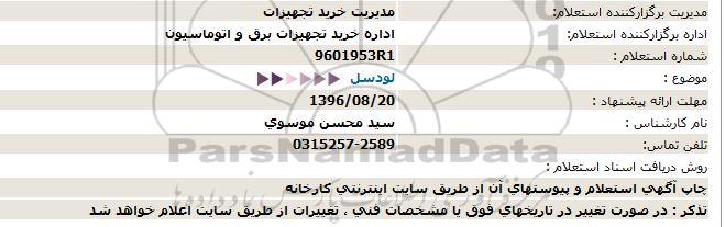 اداره برگزارکننده استعلام: اداره خرید تجهیزات برق و اتوماسیون