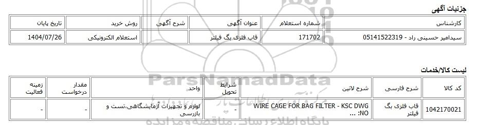 سیدامیر حسینی راد - 05141522319171702قاب فلزی بگ فیلتراستعلام الکترونیکی1404/07/26