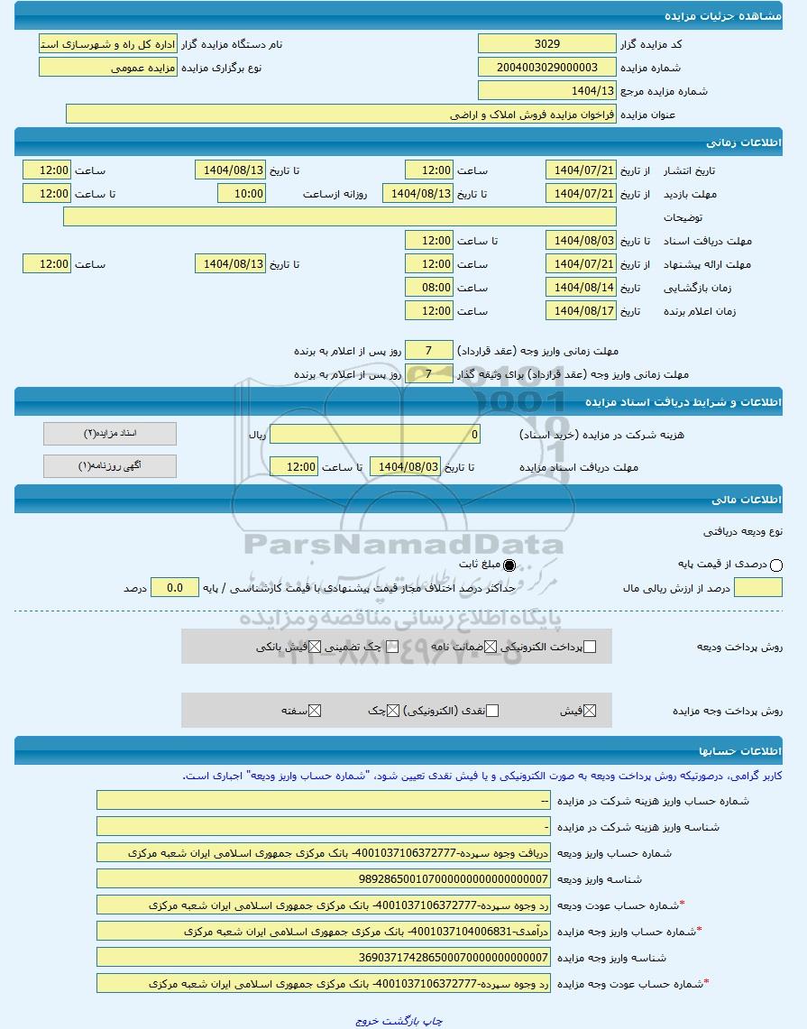 | شناسه واریز هزینه شرکت در مزایده | - |