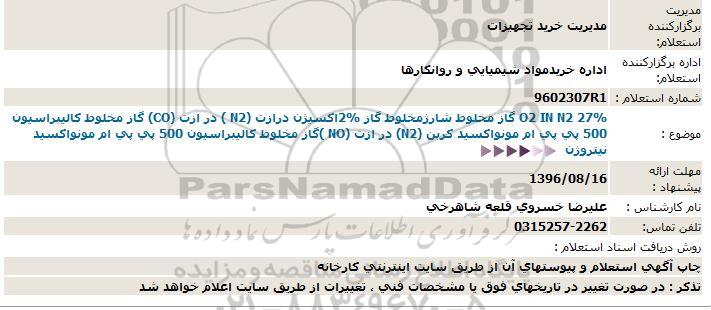 اداره برگزارکننده استعلام: اداره خرید مواد شیمیایی و روانکارها
