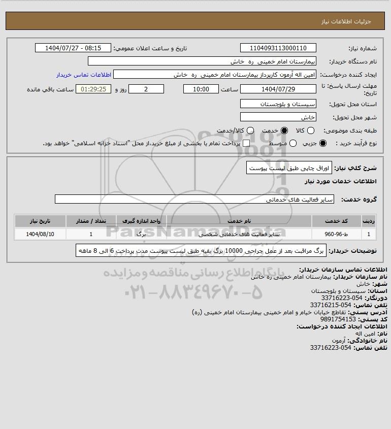 توضیحات خریدار:برگ مراقبت بعد از عمل جراحی 10000 برگ بقیه طبق لیست پیوست مدت پرداخت 6 الی 8 ماهه