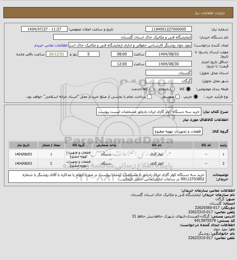 نام دستگاه خریدار:ازمایشگاه فنی و مکانیک خاک استان گلستان