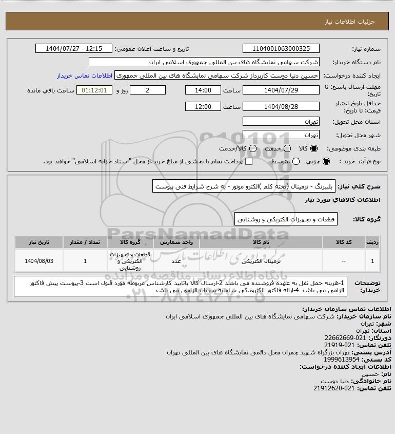 1 -- ترمینال الکتریکی عدد قطعات و تجهیزات الکتریکی و روشنایی 1 1404/08/03
