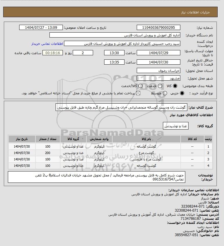 نام دستگاه خریدار:اداره کل اموزش و پرورش استان فارس