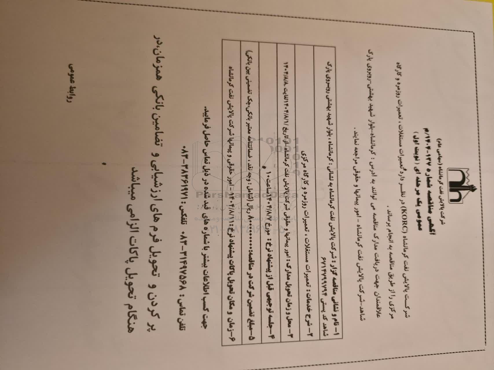 1- نام و نشانی مناقصه گذار: شرکت پالایش نفت کرمانشاه، به نشانی کرمانشاه: بلوار شهید بهشتی، روبروی پارک شاهد، کدپستی 6714799794