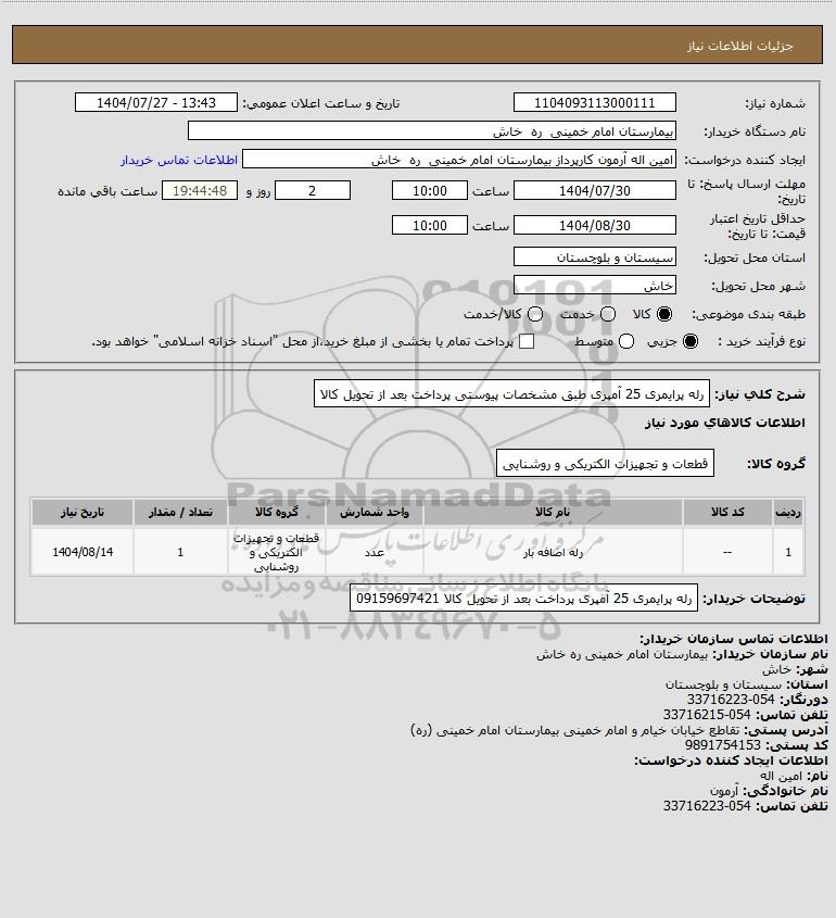 شرح کلی نیاز: رله پرایمری 25 آمپری طبق مشخصات پیوستی پرداخت بعد از تحویل کالا
