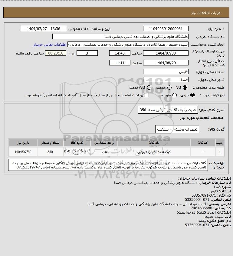شرح کلی نیاز: شیت رادیال 6f آنژیو گرافی تعداد 350