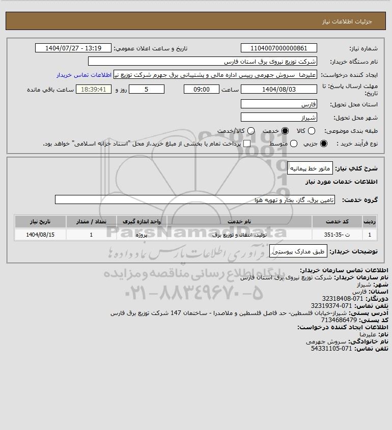 نام دستگاه خریدار:شرکت توزیع نیروی برق استان فارس