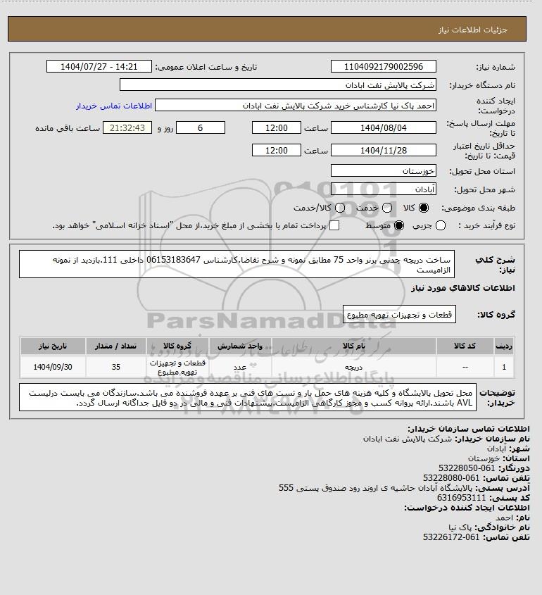 نام سازمان خریدار: شرکت پالایش نفت ابادان