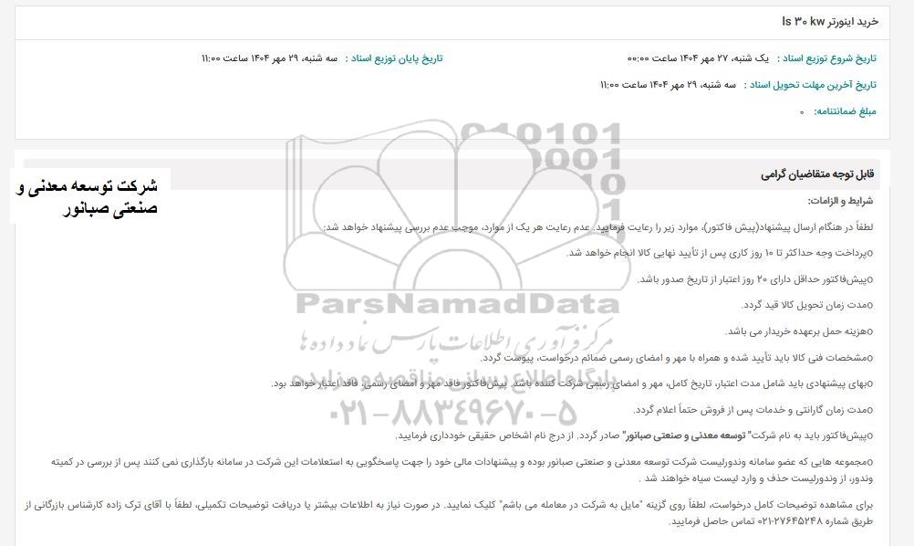 - پیش فاکتور باید به نام شرکت توسعه معدنی و صنعتی صبانور صادر گردد. از درج نام اشخاص حقیقی خودداری فرمایید.