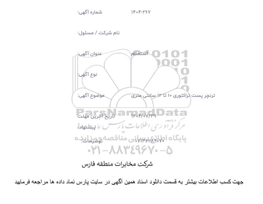 برای شرکت در مناقصه حتما از تصویر آگهی در سایت پارس نماد داده ها استفاده نمایید