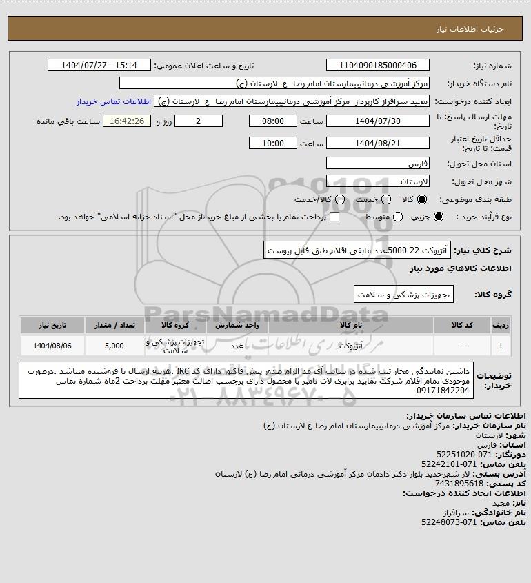 نام سازمان خریدار: مرکز آموزشی درمانیبیمارستان امام رضا ع لارستان (ج)