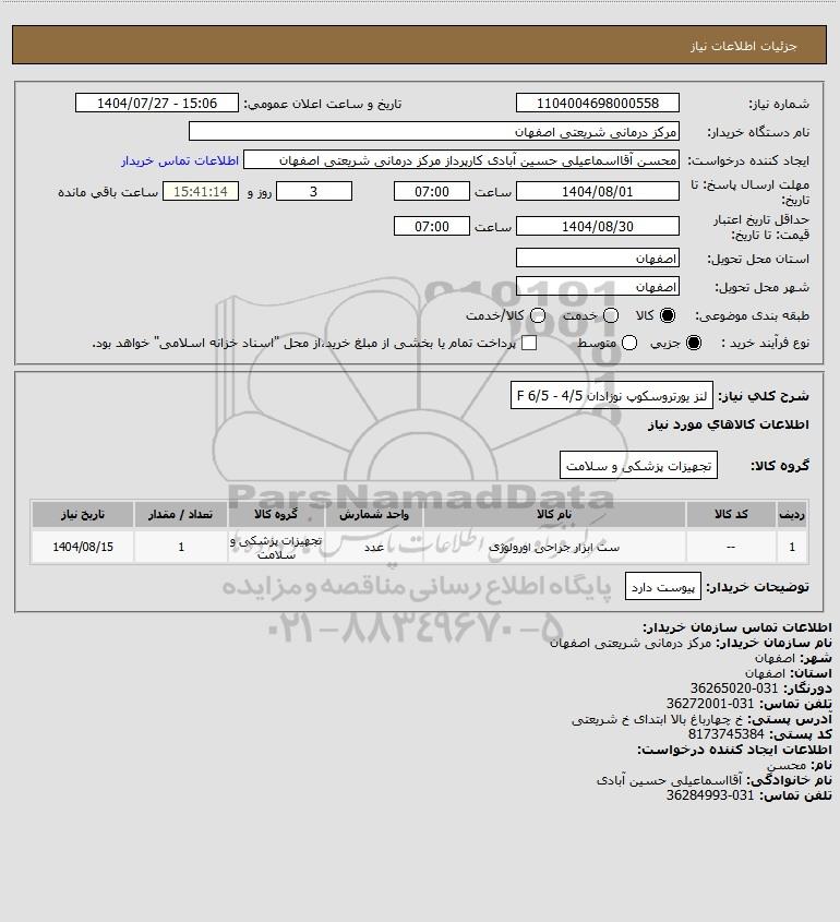 نام دستگاه خریدار:مرکز درمانی شریعتی اصفهان