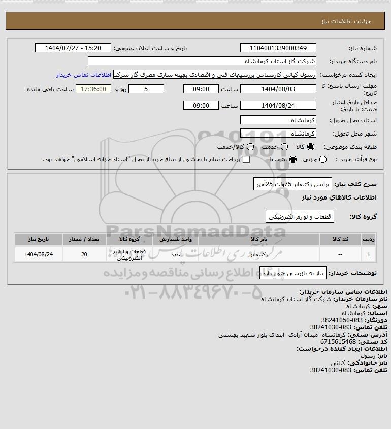 شرح کلی نیاز: ترانس رکتیفایر 75ولت 25آمپر