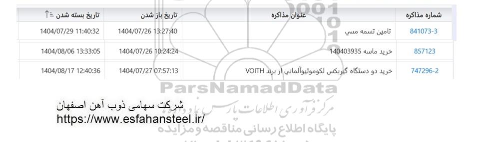 | 747296-2 | خرید دو دستگاه گیربکس لکوموتیو آلمانی از برند VOITH | 1404.07.27 | 1404.08.17 |