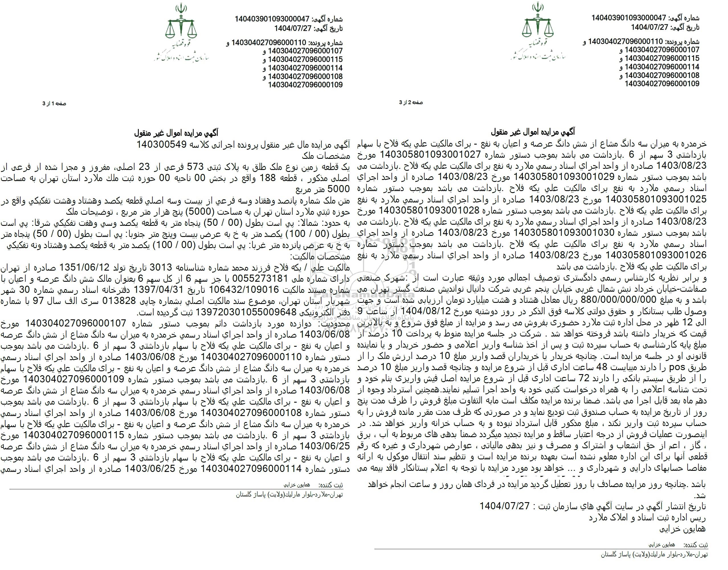 تاریخ مزایده 1404.8.12 در محل اداره ثبت ملارد