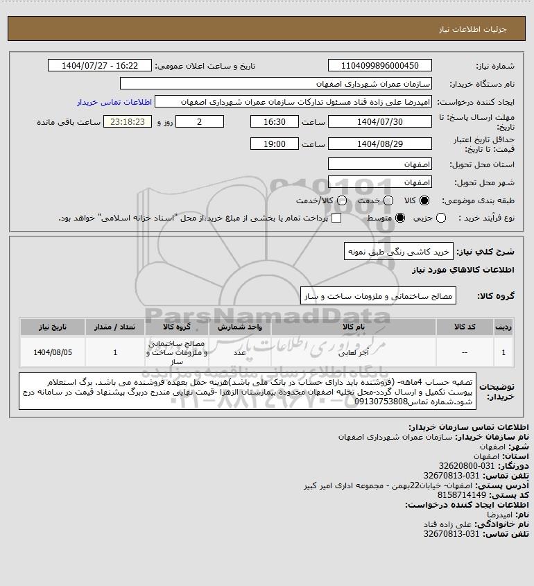نام دستگاه خریدار:سازمان عمران شهرداری اصفهان