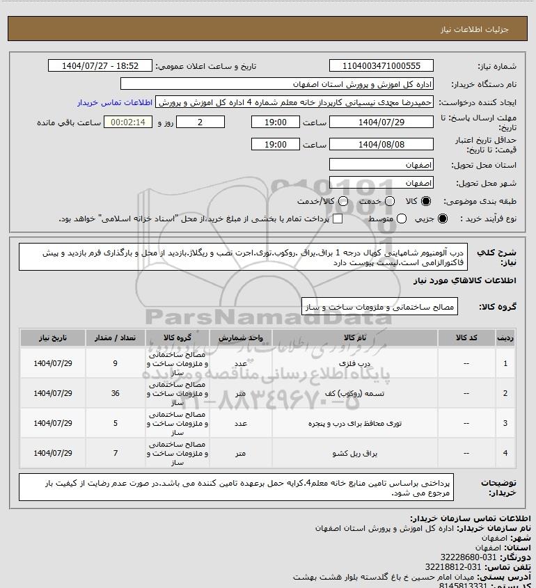 نام سازمان خریدار: اداره کل اموزش و پرورش استان اصفهان