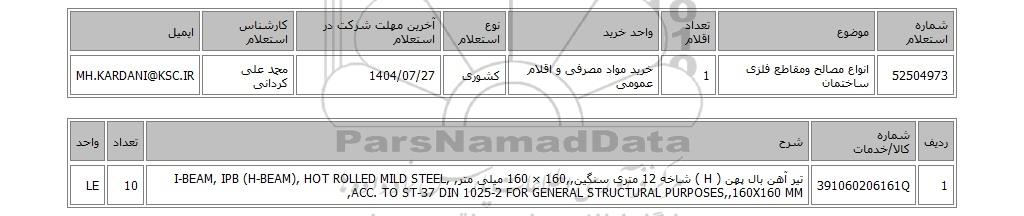 52504973انواع مصالح ومقاطع فلزی ساختمان1خرید مواد مصرفی و اقلام عمومیکشوری1404/07/27محمد علی کردانیMH.KARDANI@KSC.IR