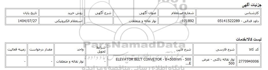 استعلام الکترونیکی نوار نقاله و متعلقات, استعلام الکترونیکی، نوار نقاله و متعلقات